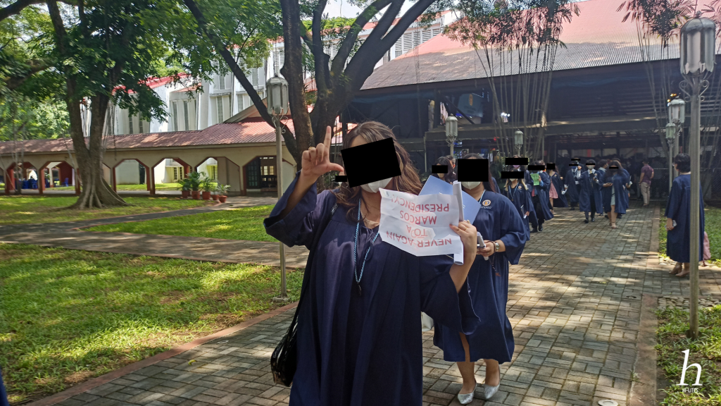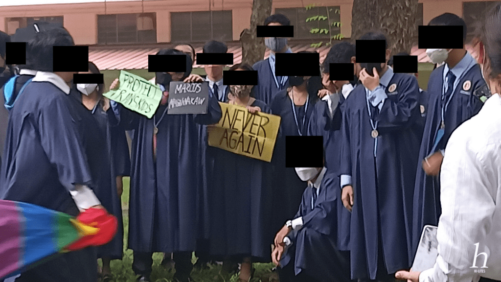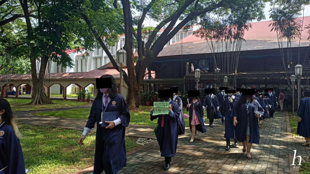 During the portion of Commencement Exercises for the Humanities and Social Sciences (HumSS) Strand, several unnamed students of the Ateneo de Manila Senior High School (ASHS) staged a protest, Saturday, June 4.