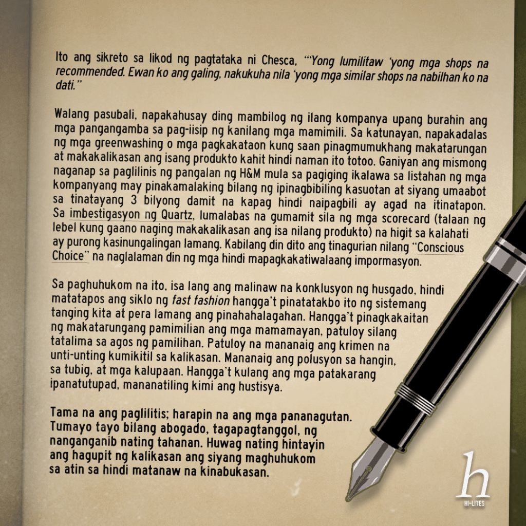 Probe Sa Salang Fast Fashion: Ang Paghuhukom Posted by HiLitesASHS on March 2, 2023 Share this: Share on X (Opens in new window) X Share on Facebook (Opens in new window) Facebook Like Loading... Related