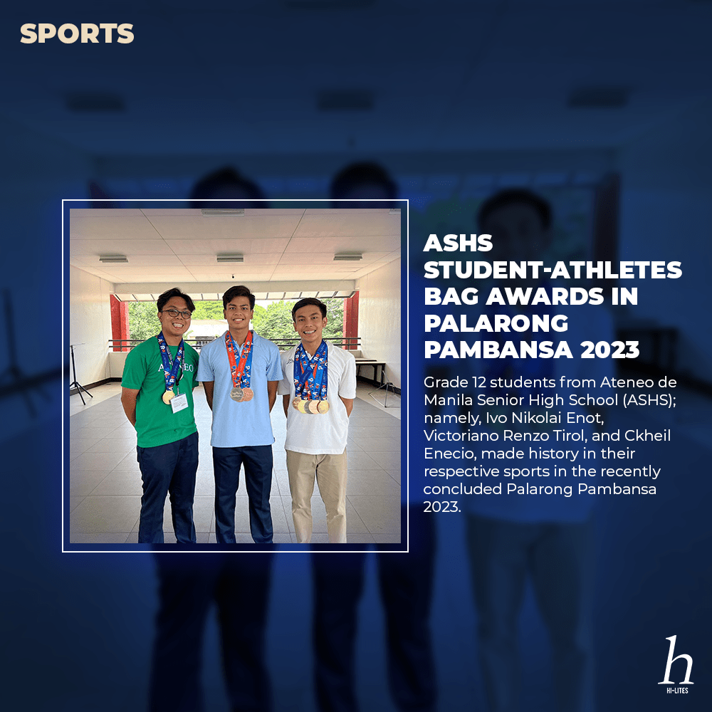 Grade 12 students from Ateneo de Manila Senior High School (ASHS); namely, Ivo Nikolai Enot, Victoriano Renzo Tirol, and Ckheil Enecio, made history in their respective sports in the recently concluded Palarong Pambansa 2023.
