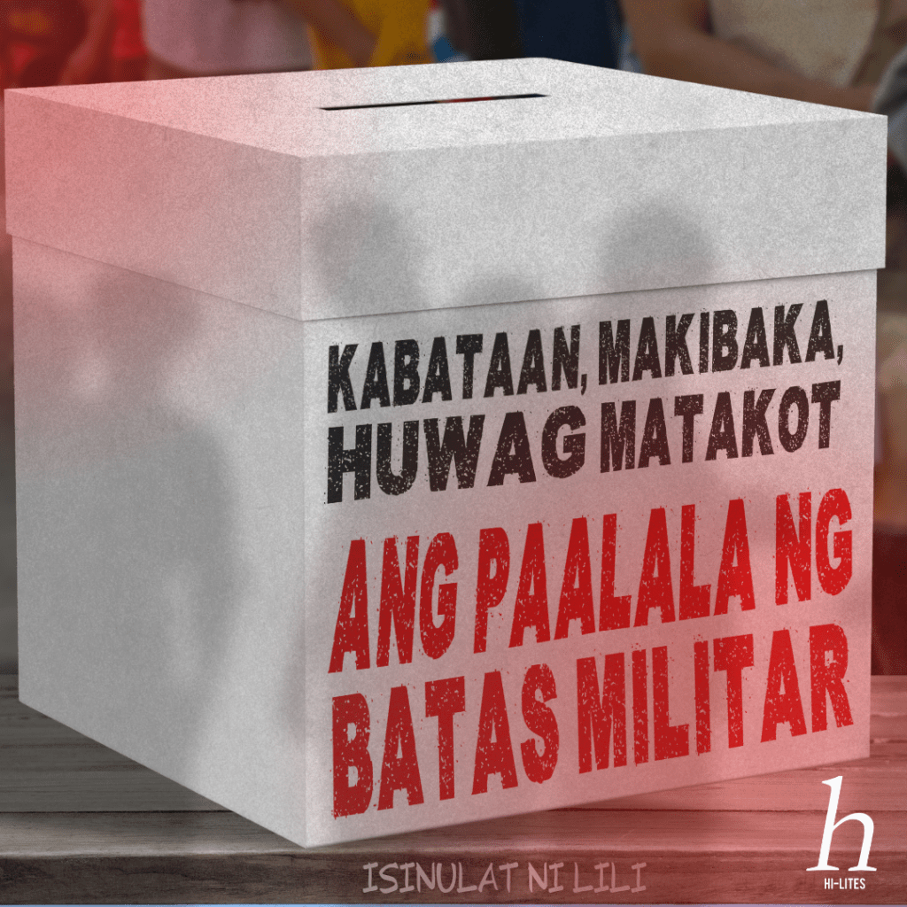 Subalit, sa kabila ng mga hadlang, ngayong ika-52 anibersaryo ng deklarasyon ng Batas Militar sa Pilipinas, nagawang maipakita, hindi lamang ng komunidad ng ASHS, kundi ng ibang kabataan ang kanilang karapatang makilahok—ang kanilang karapatang magsalita at makibaka para sa kanilang paniniwala at pinaninindigan sa buhay. Naipakita natin na, ngayon pa lamang, sa ating edad, mayroon tayong pinaninindigan, mayroon tayong pinaglalaban, at mayroon tayong boses na dapat nilang pakinggan. Panahon na upang ipakita na ang kabataan ay may masasabi sa nangyari at nangyayari sa bansa. Ang kabataan ay hindi lamang pag-asa ng bayan. Bagkus, ang kabataan ay boses ng kalayaan.