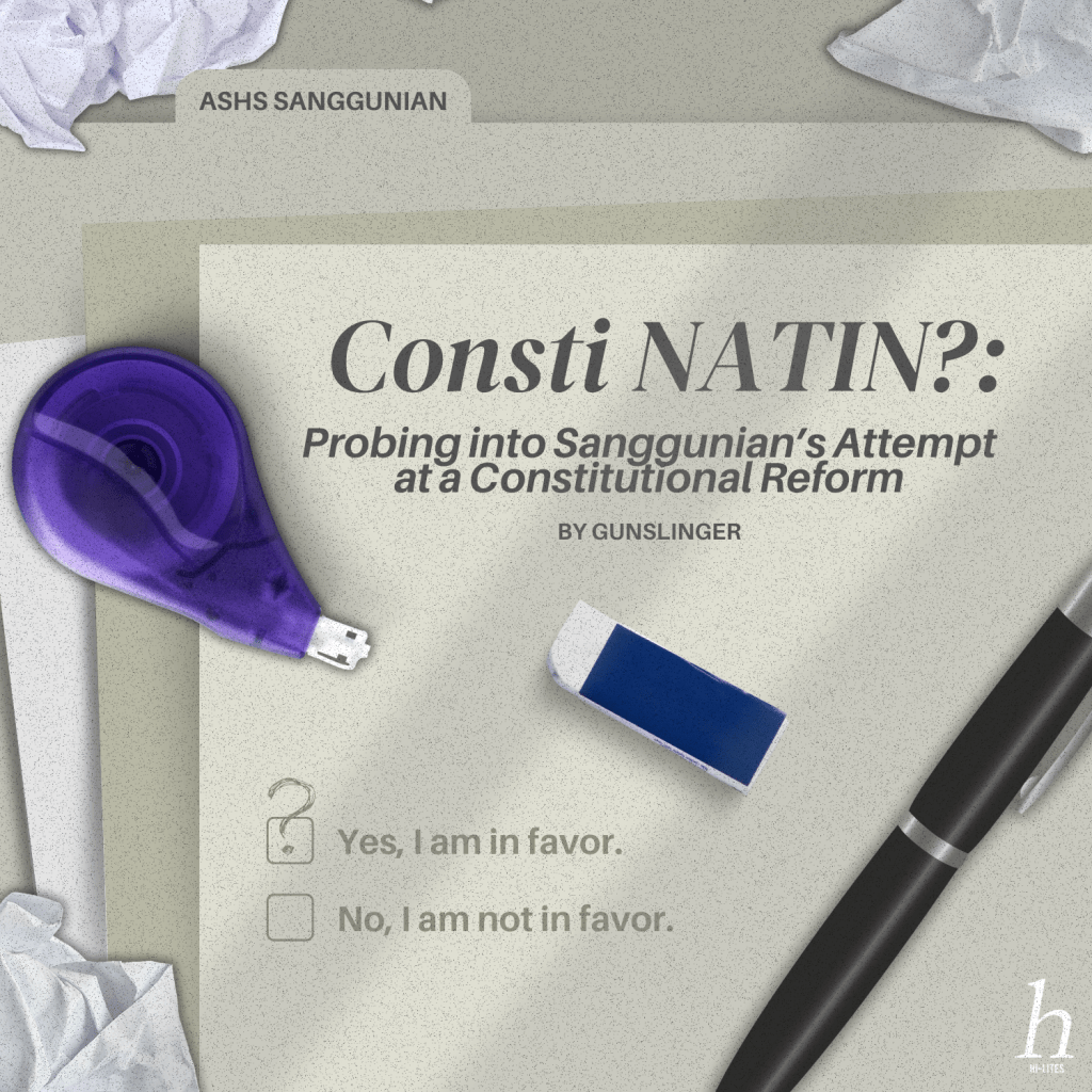 With the ever-changing environment in the ASHS, its student government, the Sanggunian, and its constitution must always learn to adapt to the current context of the student body, which is why a constitutional reform is a crucial step in ensuring that the Sanggunian can serve the students to their best interests.