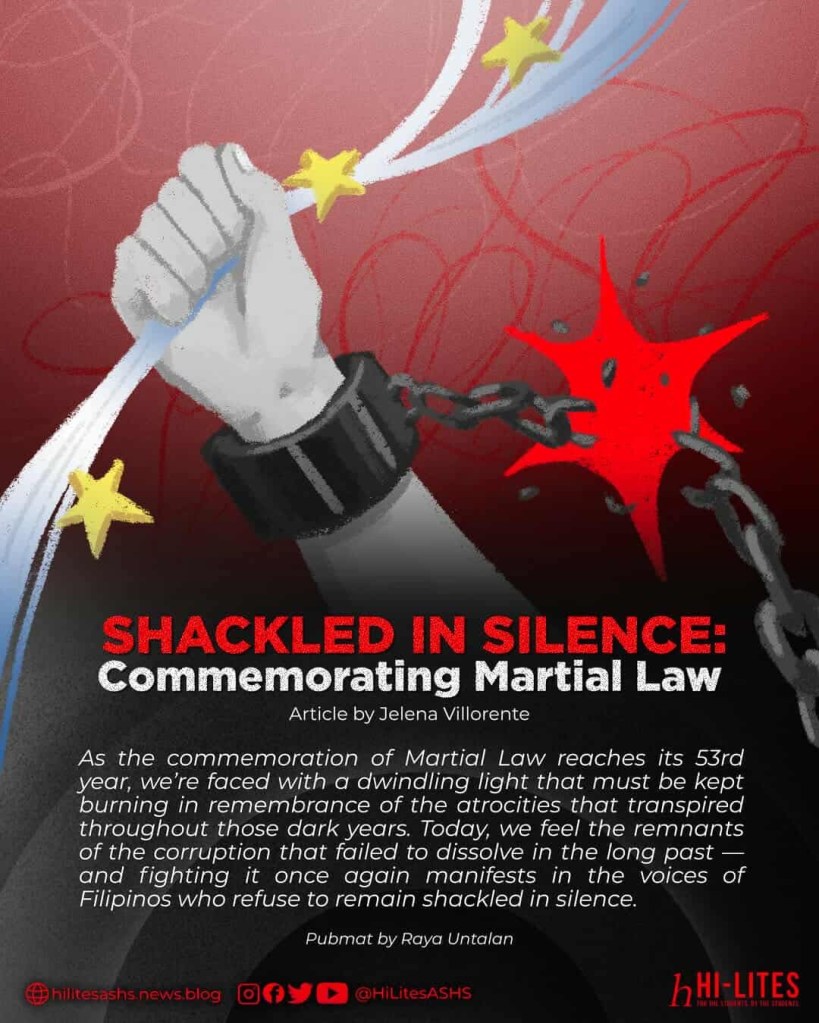 At the end of the day, we are not to let ourselves be shackled in silence, trapped in fear, nor chained in obscurity. Commemorating martial law in its rawest, purest form is a step towards rekindling the candles and reciting the elegies being held for those who suffered under the hands of dictatorship.