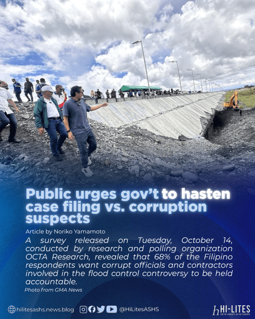 A survey released on Tuesday, October 14, conducted by research and polling organization OCTA Research, revealed that 68% of the Filipino respondents want corrupt officials and contractors involved in the flood control controversy to be held accountable.