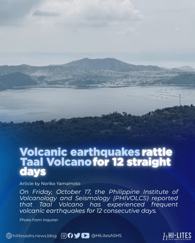 On Friday, October 17, the Philippine Institute of Volcanology and Seismology (PHIVOLCS) reported that Taal Volcano has experienced frequent volcanic earthquakes for 12 consecutive days.