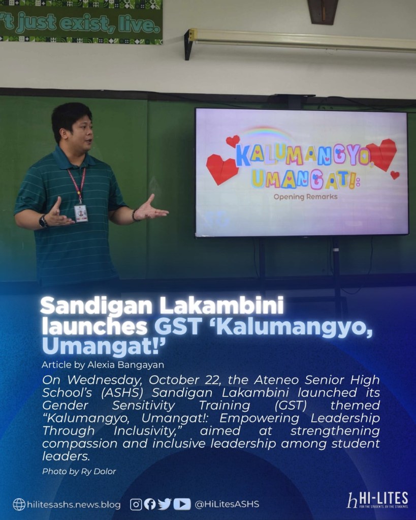 On Wednesday, October 22, the Ateneo Senior High School’s (ASHS) Sandigan Lakambini launched its Gender Sensitivity Training (GST) themed “Kalumangyo, Umangat!: Empowering Leadership Through Inclusivity,” aimed at strengthening compassion and inclusive leadership among student leaders.