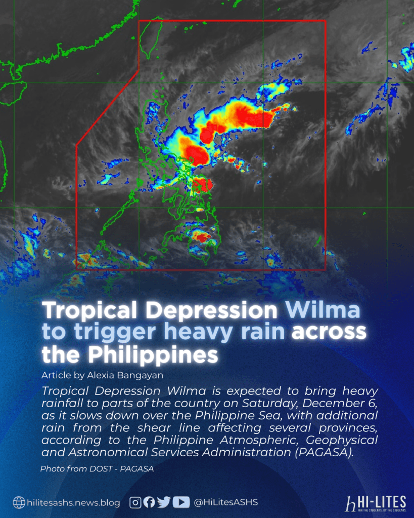 Tropical Depression Wilma is expected to bring heavy rainfall to parts of the country on Saturday, December 6, as it slows down over the Philippine Sea, with additional rain from the shear line affecting several provinces, according to the Philippine Atmospheric, Geophysical and Astronomical Services Administration (PAGASA).