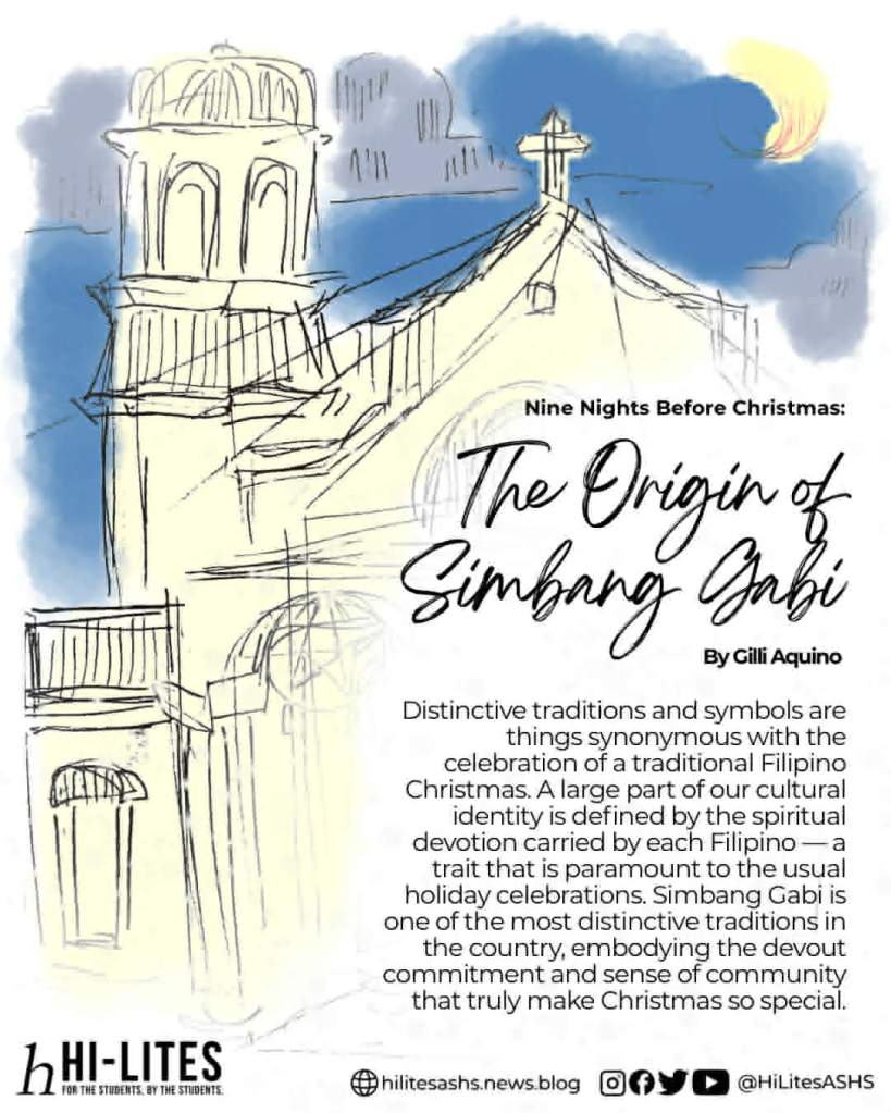 Aside from the time for peaceful solemnity granted by Simbang Gabi ā the celebration also allows people to catch up with friends and family that they have not seen in a while. Thus giving way to jovial reunions under the glittering lights of parols. This sentiment holds true for Gaby Evangelista, a member of the Ateneo Liturgical Ministry (ALM) ASHS, who often celebrates Simbang Gabi with his family and the junior high friends who serve mass alongside him.