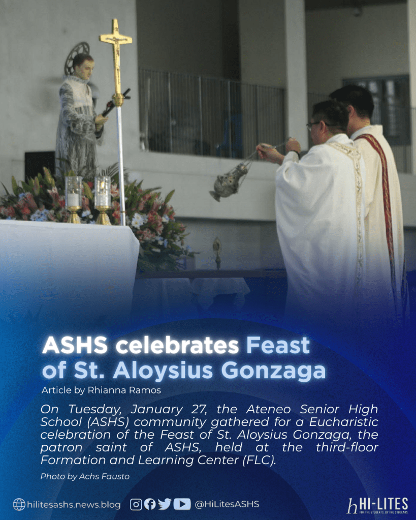 On Tuesday, January 27, the Ateneo Senior High School (ASHS) community gathered for a Eucharistic celebration of the Feast of St. Aloysius Gonzaga, the patron saint of ASHS, held at the third-floor Formation and Learning Center (FLC).