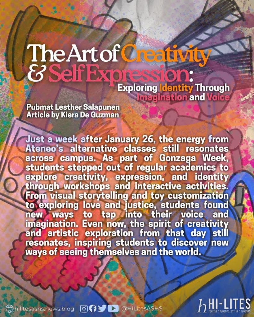 “You get to see that justice isn’t always just for our HUMSS-centered classes, but can be found in everyday life and the stories that we explore and write ourselves. You get to see how such theories can enrich a story, how they let a narrative grow and allow us to better understand not just the characters but ourselves as well and the way we interpret stories,” she had reflected, pointing out that connecting themes like justice to everyday experiences and narratives helps students see how literature mirrors real life.